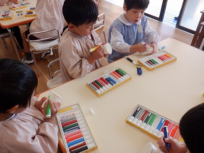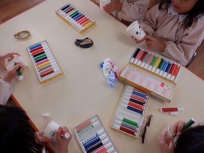 紙コップにマーカーで絵を描いて、素敵に仕上げました。12月6日(土)千里山第一噴水で16時より