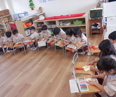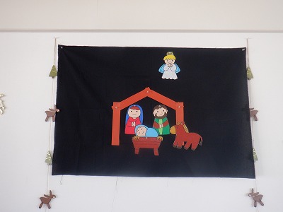 アドベントクランツの灯火も2本になりました。ロウソクの明かりを見つめながら、クリスマスの降誕のお話を聞き少しずつ本当のクリスマスを感じている子どもたちです。
