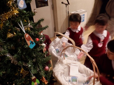 今日は子どもたちのクリスマス礼拝。お家から献金を持って来ていただき、みんなで献金を捧げました。