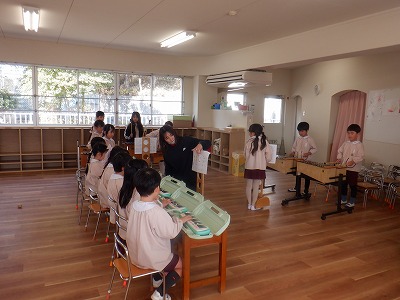 普段から親しみのある楽器とリズム打ちを練習するのではなく、楽しみながら発表会の日を迎えた子どもたち。