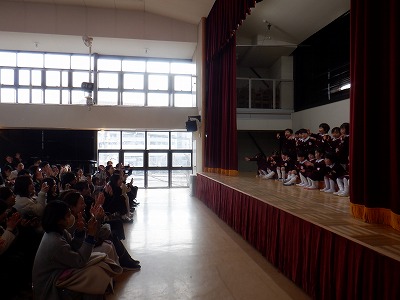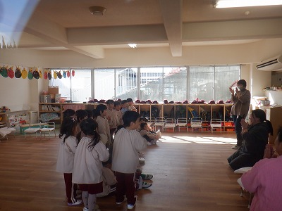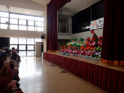 前日にリハーサルがあり、在園児のお客さんを前に少し緊張気味でしたが、今日は大好きなお家の方が見てくれている嬉しさもあり笑顔が見られ、素敵は発表会が出来ました。幕が閉まる間際、子どもたちは全力でバイバイ~!!と。お家の方も笑顔でバイバイと返してくださり、みんなで楽しめた会になりました。