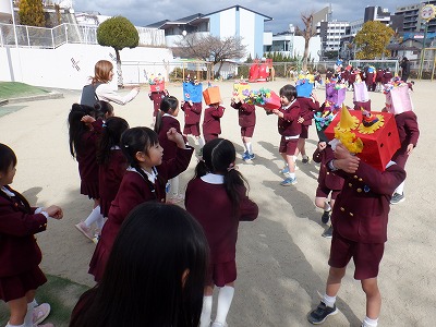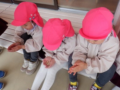 先生が鬼になったり、子どもたちが鬼になったり、「鬼は外~福は内~」園内に元気な声が響いていました。