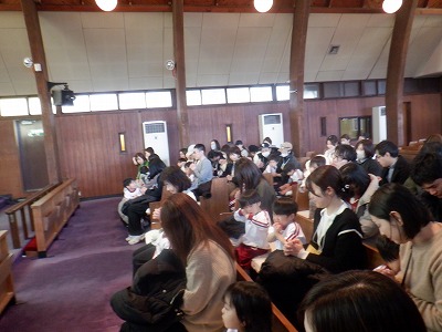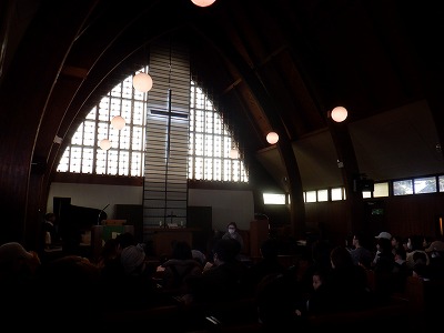 今月は千里山キリスト教会でチャペル礼拝を守りました。お家の方と一緒に礼拝堂に初めて入り、讃美歌を歌い牧師先生からお話を聞き、心静かに過ごしました。