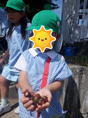 幼稚園の裏庭にあるどんぐりの木「アベマキ」のどんぐりが豊作で、毎日毎日子どもたちがどんぐり拾いを楽しんでいます。木にもまだいっぱい!!引き続きどんぐり拾い楽しもうね。